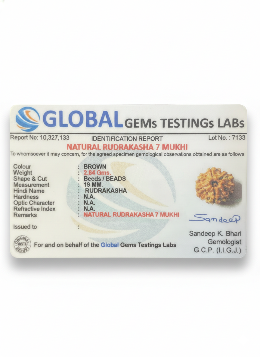 The 7 Mukhi Nepali Rudraksha Bead is a 100% natural and original Himalayan rudraksh, sourced directly from Nepal. This bead features clear and naturally formed seven mukhi (faces) with a strong, heavy structure, as visible in the reference image. Nepali Rudraksha beads are highly valued for their authenticity, high energy, and durability.