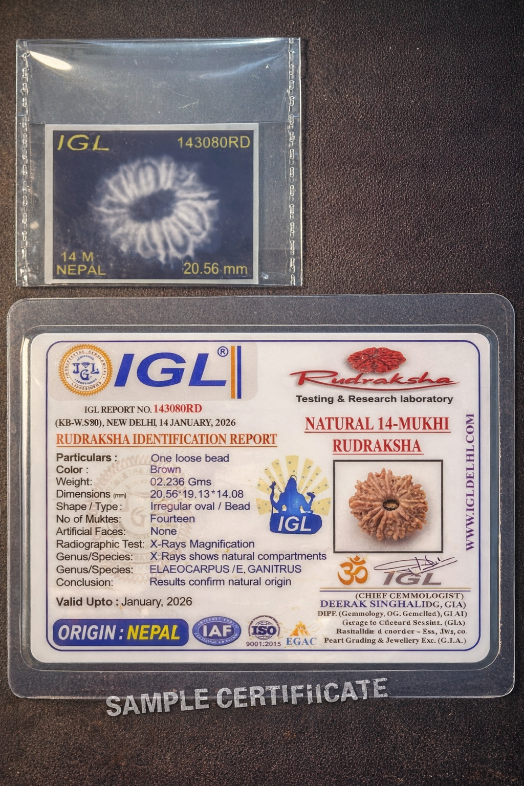 Our Natural 14 Mukhi Nepali Rudraksha is handpicked, quality-checked, and available with lab test certification (as applicable), making it perfect for those who want authentic spiritual energy and genuine quality.
