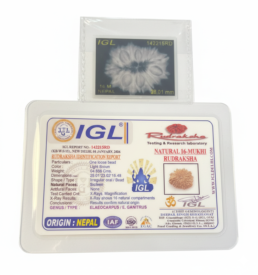 Original 16 Mukhi Nepali Rudraksha 28MM WITH IGL Test and Xray Report