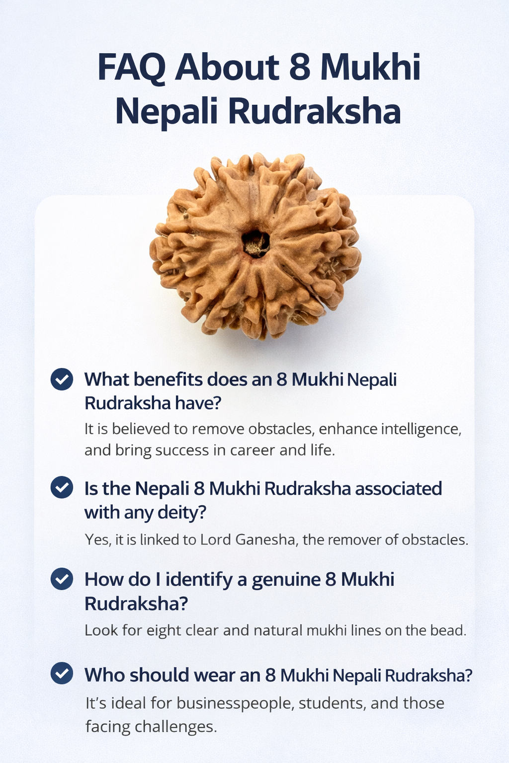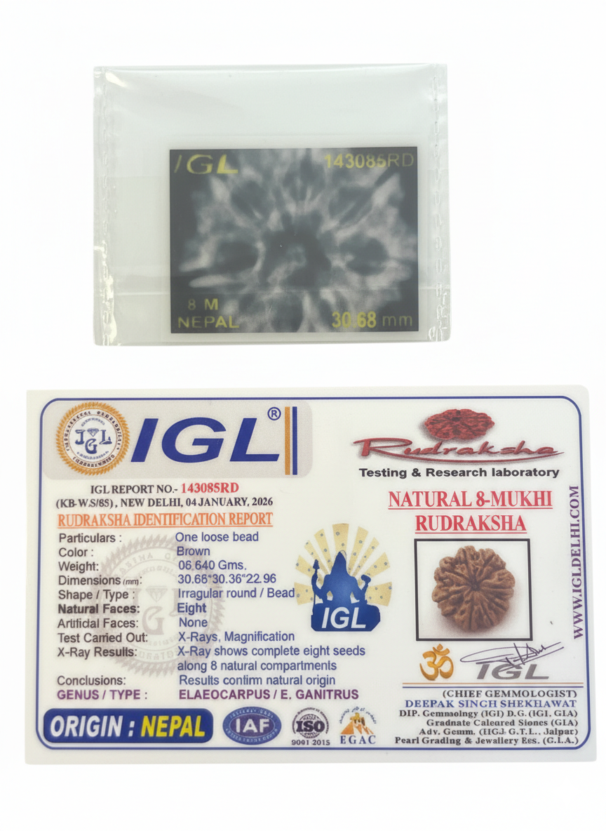 🔍 Keywords: 8 Mukhi Rudraksha Nepal, Lord Ganesha Mala, Obstacle Removal Bead, Rahu Ketu Jewelry, Health & Wealth Rudraksha