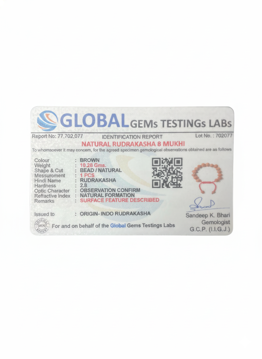 Attract success, wisdom, and obstacle-free progress with Original 8 Mukhi Indonesian Rudraksha Bracelet, a sacred Rudraksha associated with Lord Ganesha, the remover of obstacles. This Rudraksha is traditionally worn to support success, confidence, mental clarity, and protection from negative energies.