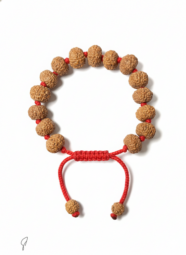 Made with lightweight Indonesian Rudraksha beads, this bracelet is extremely comfortable for daily wear. Indonesian beads are preferred for bracelets because of their uniform size, smooth texture, and light weight, making them ideal for long-term use.