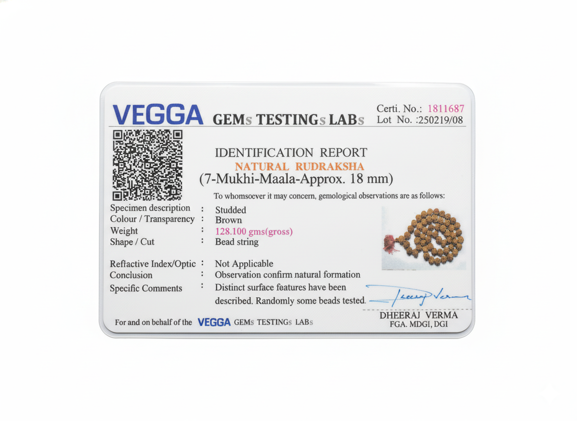 According to ancient scriptures and spiritual traditions, 7 Mukhi Rudraksha is believed to help reduce financial blockages, support disciplined growth, and encourage a positive mindset while maintaining emotional and mental balance.