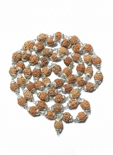 The silver plating adds durability, shine, and a refined appearance while preserving the traditional spiritual essence of Rudraksha. This mala is ideal for men and women who prefer a modern yet devotional accessory that complements both ethnic and casual outfits.